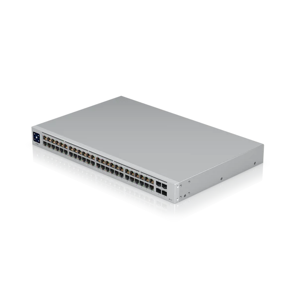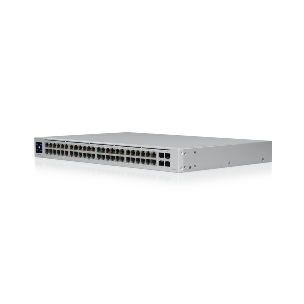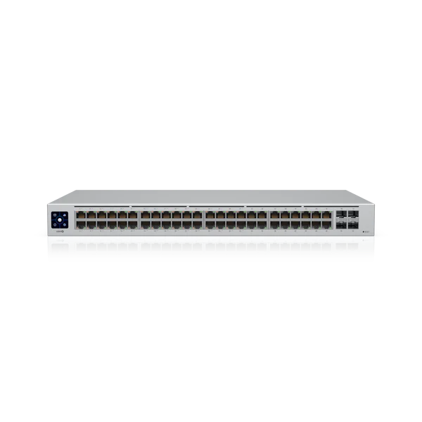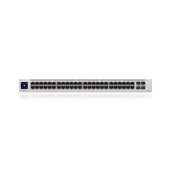 The Switch 48 PoE (USW 48 PoE) is a fully managed switch with (48) GbE RJ45 ports, including (32) GbE, 802.3at PoE+ ports, and (4) 1G SFP ports. The versatile USW 48 PoE provides Gigabit PoE links to Ethernet devices while also supplying Gigabit fiber uplink options fit for an enterprise network. The switch also offers an extensive suite of Layer 2 switching protocols, including port-specific operation modes (switching, mirroring, or aggregate), and features a 1.3″ LCM color touchscreen that concisely displays key system and connection insights. This switch can also be monitored or configured from anywhere with the powerful, intuitive UniFi Network web application and mobile app.